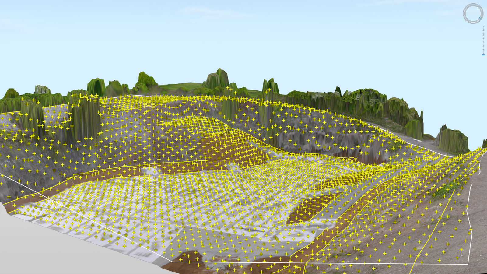 Virtuelles Vermessungspunktraster und Bruchlinienkanten zur Weiterverarbeitung in CAD-Anwendungen.